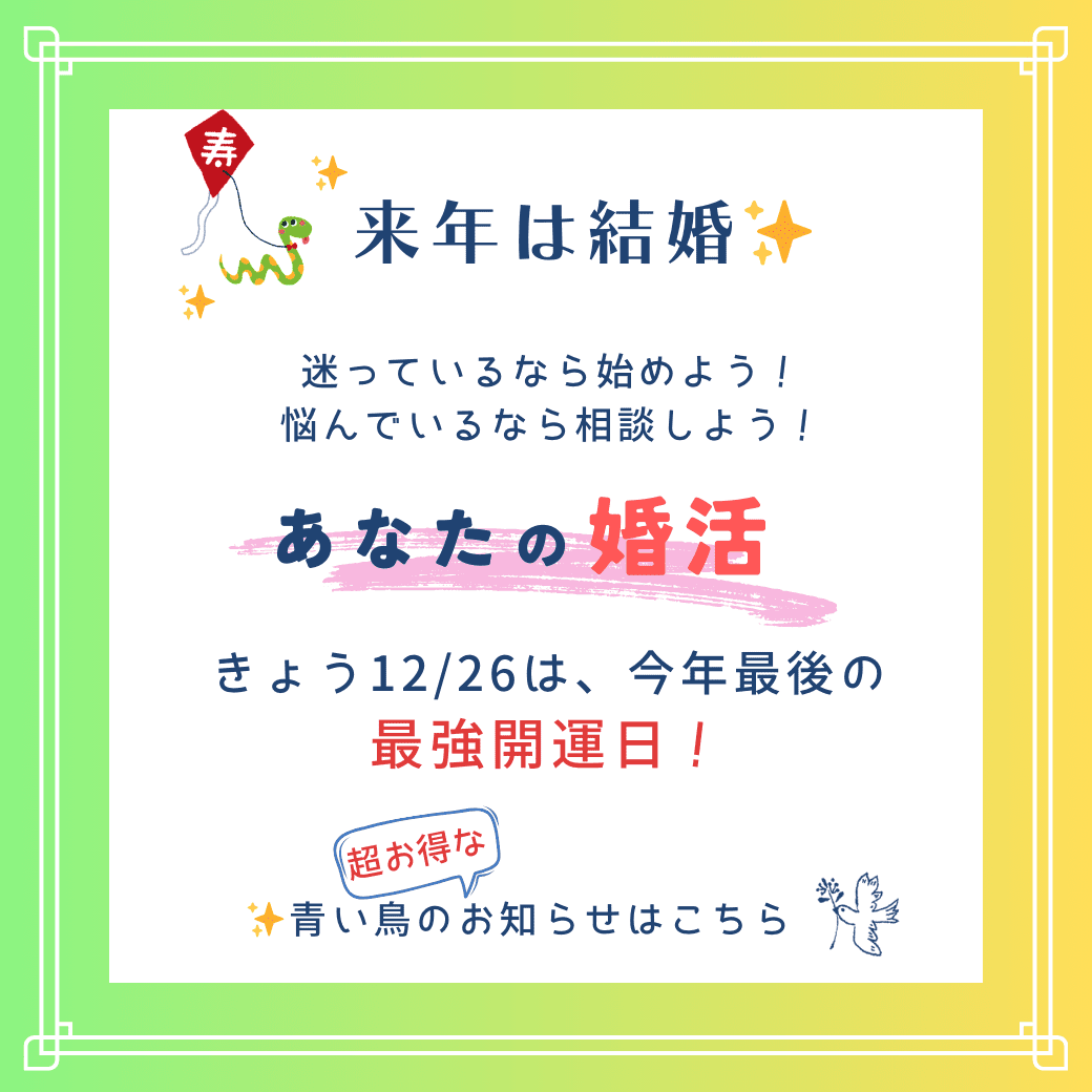 『来年は結婚する』と決心する、『婚活』という新たな挑戦を始める日にしてはいかがでしょうか。