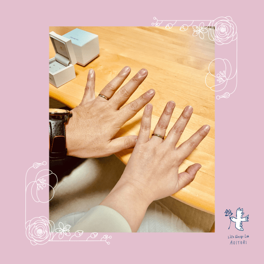 指輪の選択は、「めーーっちゃ悩んだんですけど、結局、シンプルで色にこだわって決めました!!」とのこと。