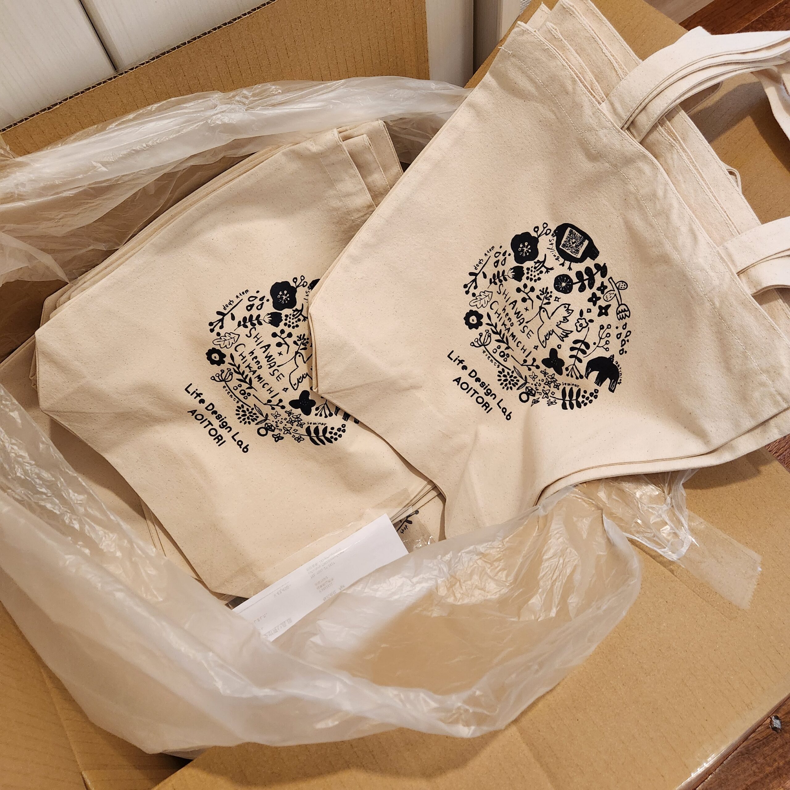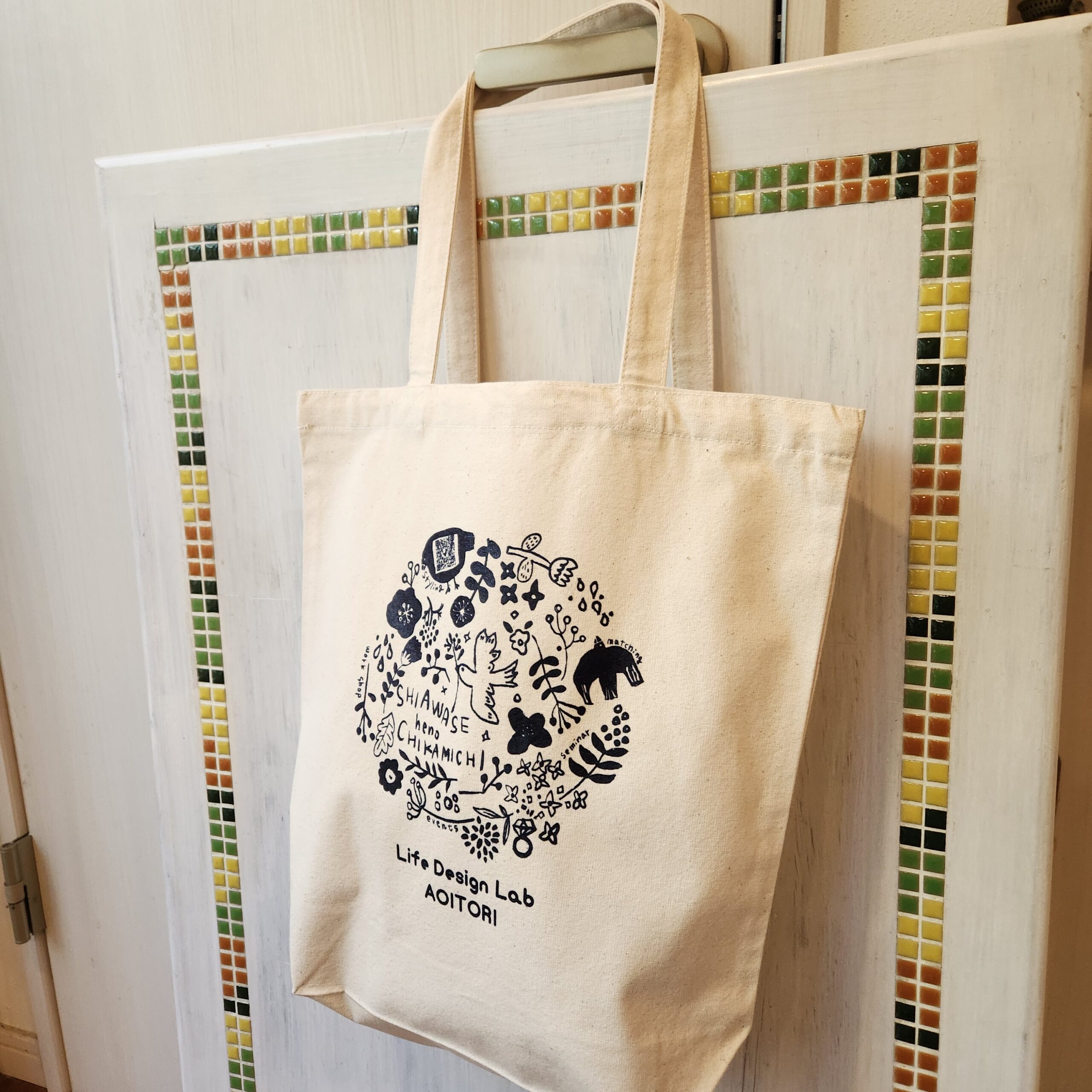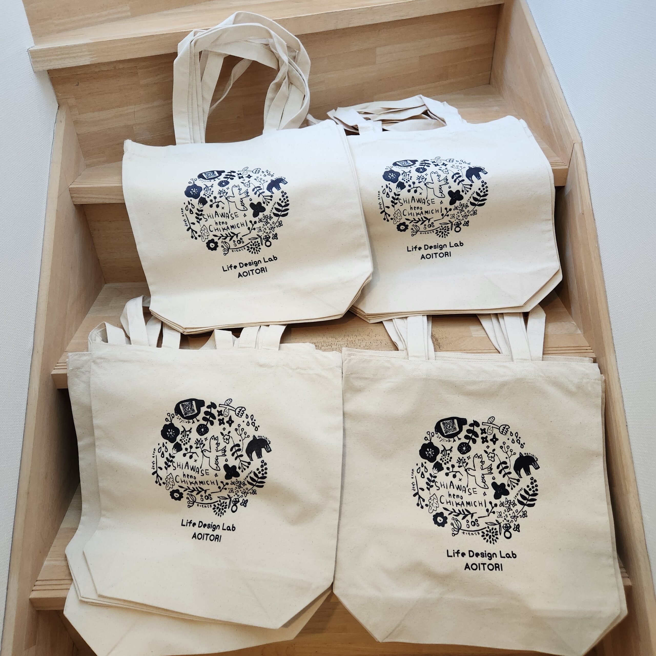 ちなみに、このトートバッグは青い鳥公式LINE内のショップカードのポイントが5個たまったらプレゼントいたします。