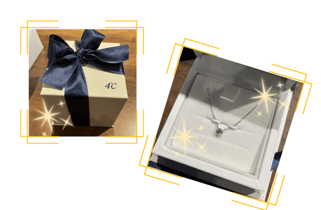 すると、ダイヤモンドがキラキラと輝くネックレスが入っていたそうです。